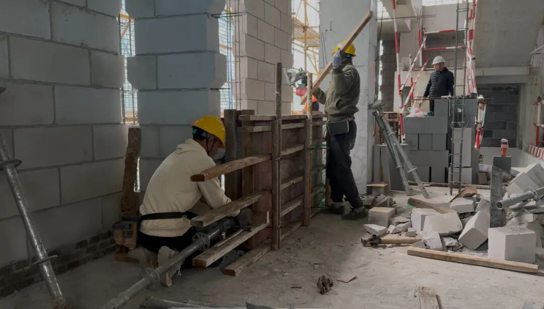 在项目所在地DK-13-3施工现场,记者看到,工人和机械协同施工,紧张有序,多栋教学楼主体结构已初具规模。目前项目整体进展顺利,二次结构施工和内部装修正同步推进。