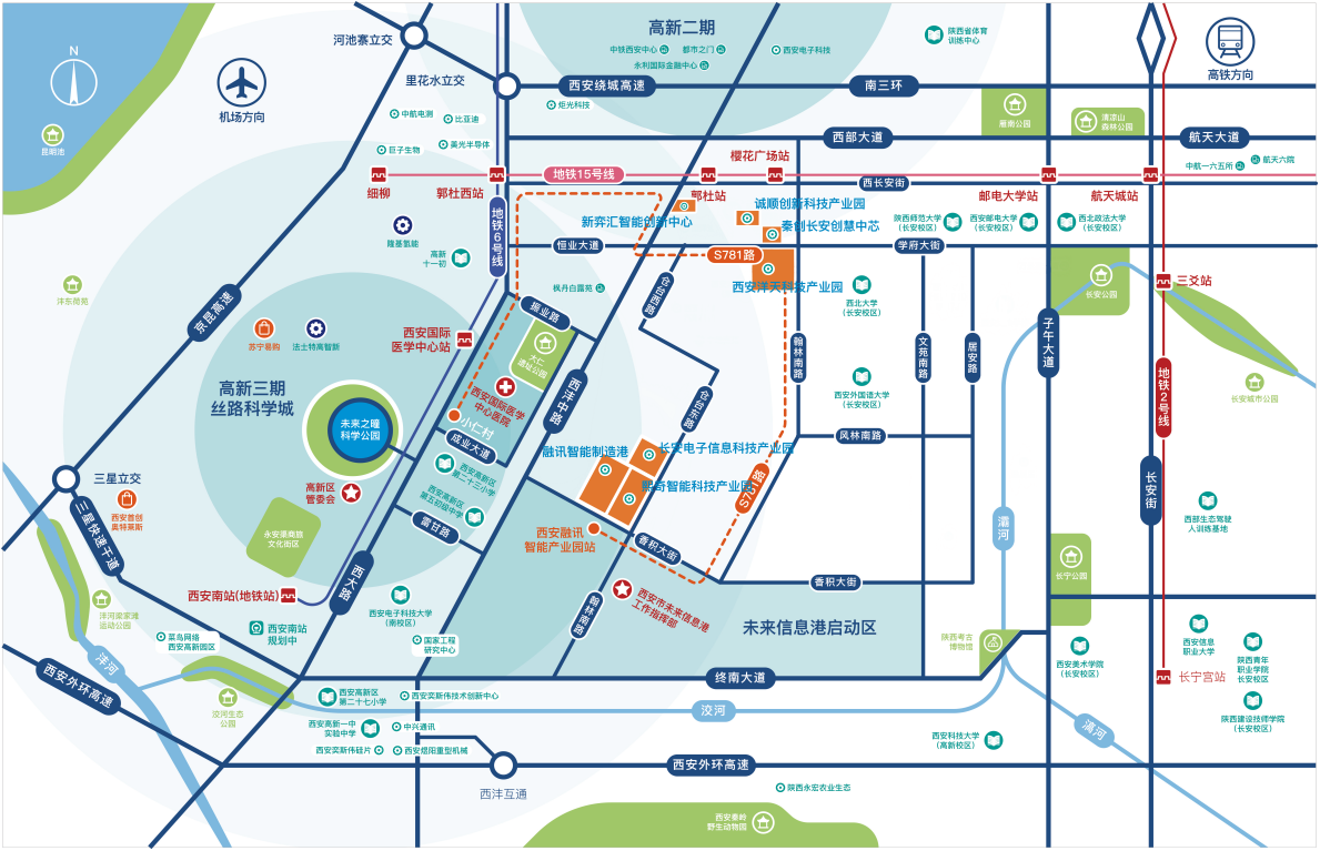·区位优势突出:紧邻主城区,西接高新中央创新区CID,东临航天基地,地铁南北纵横,交通便捷高效;