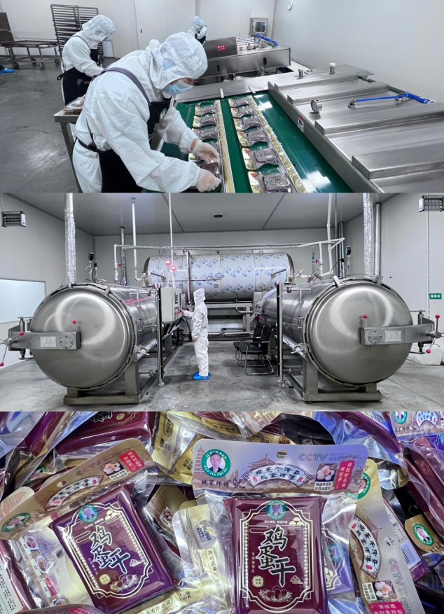 【西安市三枚蛋食品科技有限公司生产车间灭菌釜操作员赵诗雨:这边是我们的杀菌釜,因为我们的鸡蛋干不含有任何的防腐剂,是因为我们特殊的杀菌工艺,我们每一块鸡蛋干都要经过121°的高温杀菌。】
