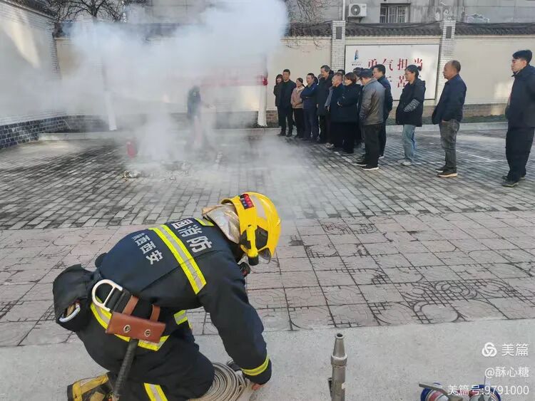 理论学习后,实操演练随即开展。消防员现场演示灭火器等器材使用方法,详解“提、拔、握、压”要领及安全注意事项。