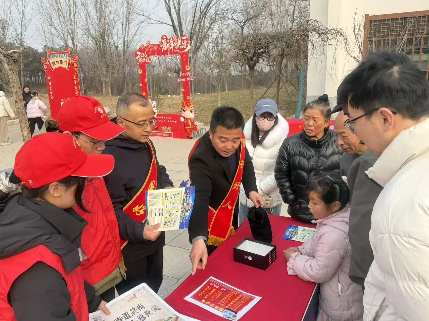 文明集市与年货市集同步开启,近十个特色摊位构成“惠民服务圈”,让群众在逛集中收获满满幸福感。“爱心义诊”区,航天医院医护人员耐心提供健康咨询、问诊服务,发放健康手册,细致解答老年人常见健康问题;“爱心义剪”摊位前,志愿者熟练为老人、孩子修剪头发,让大家清爽迎新春。“文明护春”宣传区人气颇高,消防安全与反诈宣传摊位通过案例讲解、互动问答,向群众普及火灾预防和电信诈骗防范技巧。