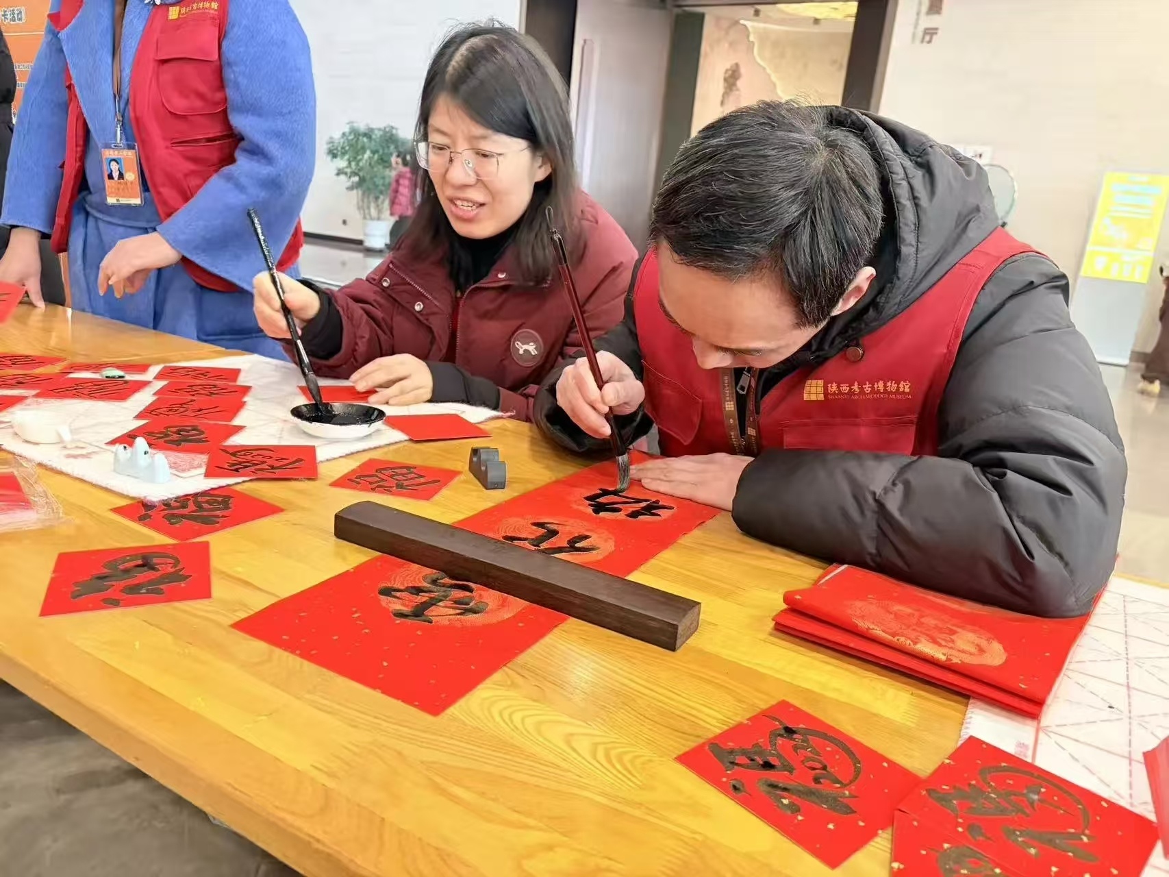兑奖处前队伍井然,领取到奖品的游客笑容洋溢,彼此分享寻马过程中的趣闻乐事。留言板前,不少人提笔写下活动感言,寄托对新春的美好憧憬。志愿者现场挥毫书写春联福字,墨香扑面,更添节日气氛。