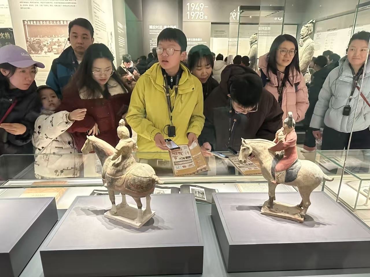 “这匹马真精美!”展厅中不时传来赞叹,游客们主动向工作人员询问文物细节。工作人员亦耐心解答,将集章活动延伸为一场活泼生动的文物知识科普课堂。