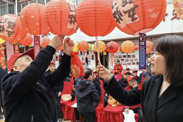 到了猜灯谜环节,志愿者们分别搀扶老人,来到灯谜区,五颜六色的灯笼下悬挂着百余条趣味灯谜,内容涵盖传统字谜、生活常识、民俗典故等,难易适中、老少皆宜。志愿者和老人三五成群,或驻足沉思,或互相探讨,工作人员也在一旁贴心提示、共同解谜。猜中谜底的老人拿着谜面兑换毛巾、香皂、水杯等实用奖品,兑奖处前人头攒动,欢声笑语不断,老人们手持奖品,脸上洋溢着满满的成就感与幸福感。