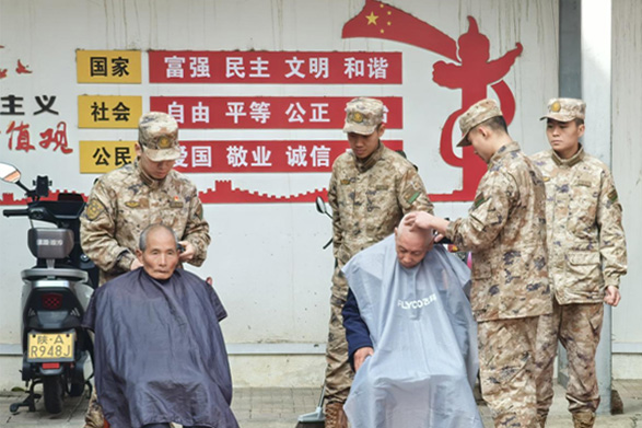 在这次活动前夕,陆军边海防学院学员二大队的官兵们早早地来到敬老院,开展学雷锋志愿服务。他们分工明确、干劲十足,拿起扫帚、抹布等工具,对敬老院的庭院、走廊、活动室进行全方位清扫,不放过任何卫生死角;有几位学员拿出专业理发工具,在院内设立“临时理发点”,耐心询问每位老人的发型需求,细致地为老人们剪头发、刮胡子,让老人们以清爽的精神面貌迎接佳节。娴熟的技艺、贴心的服务,体现了新时代人民子弟兵的鱼水深情。