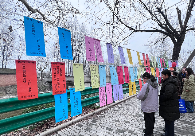 长安区王曲街道皇甫村村委会党支部委员冯建:这次活动我们灯谜设置了600个谜面,都是一些大家了解的日常知识。另外我们有投壶、跳绳等等这些项目。