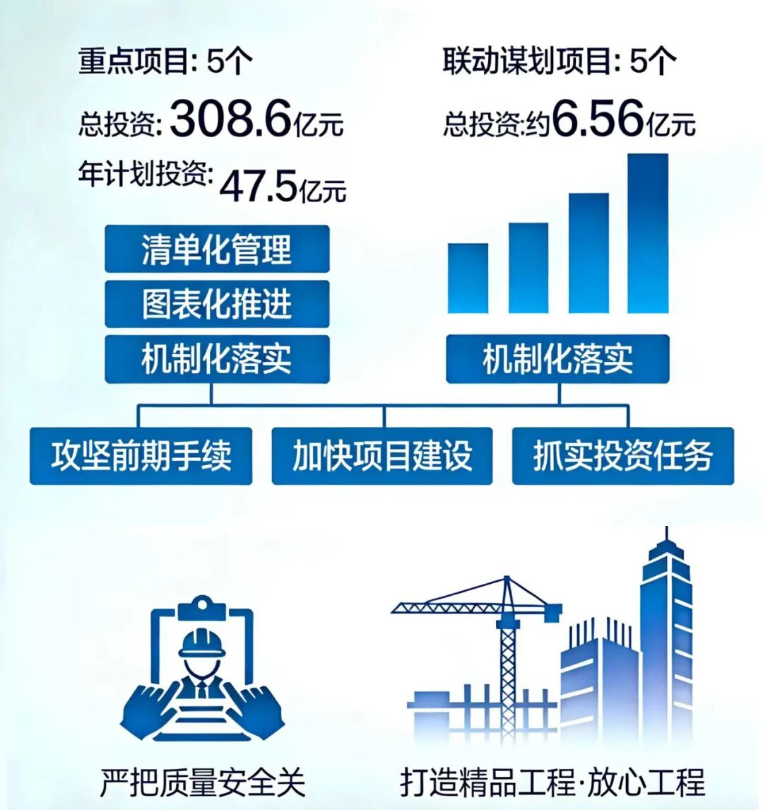 2026年承建重点项目5个,联动谋划项目5个,将持续实行清单化管理、图表化推进、机制化落实,推动项目建设全流程提速。