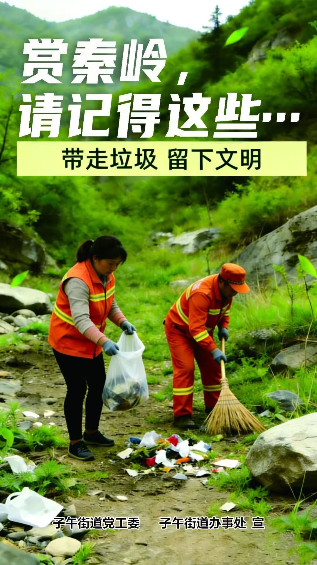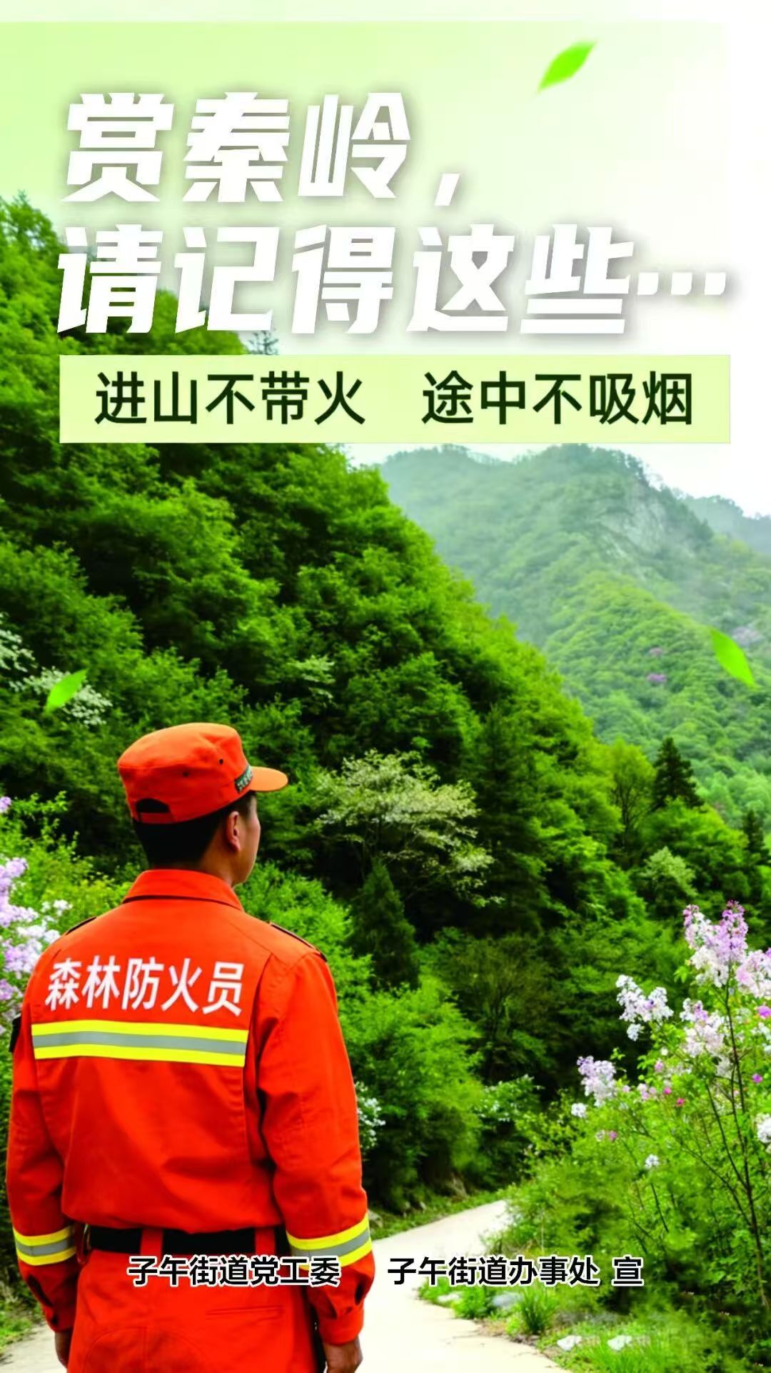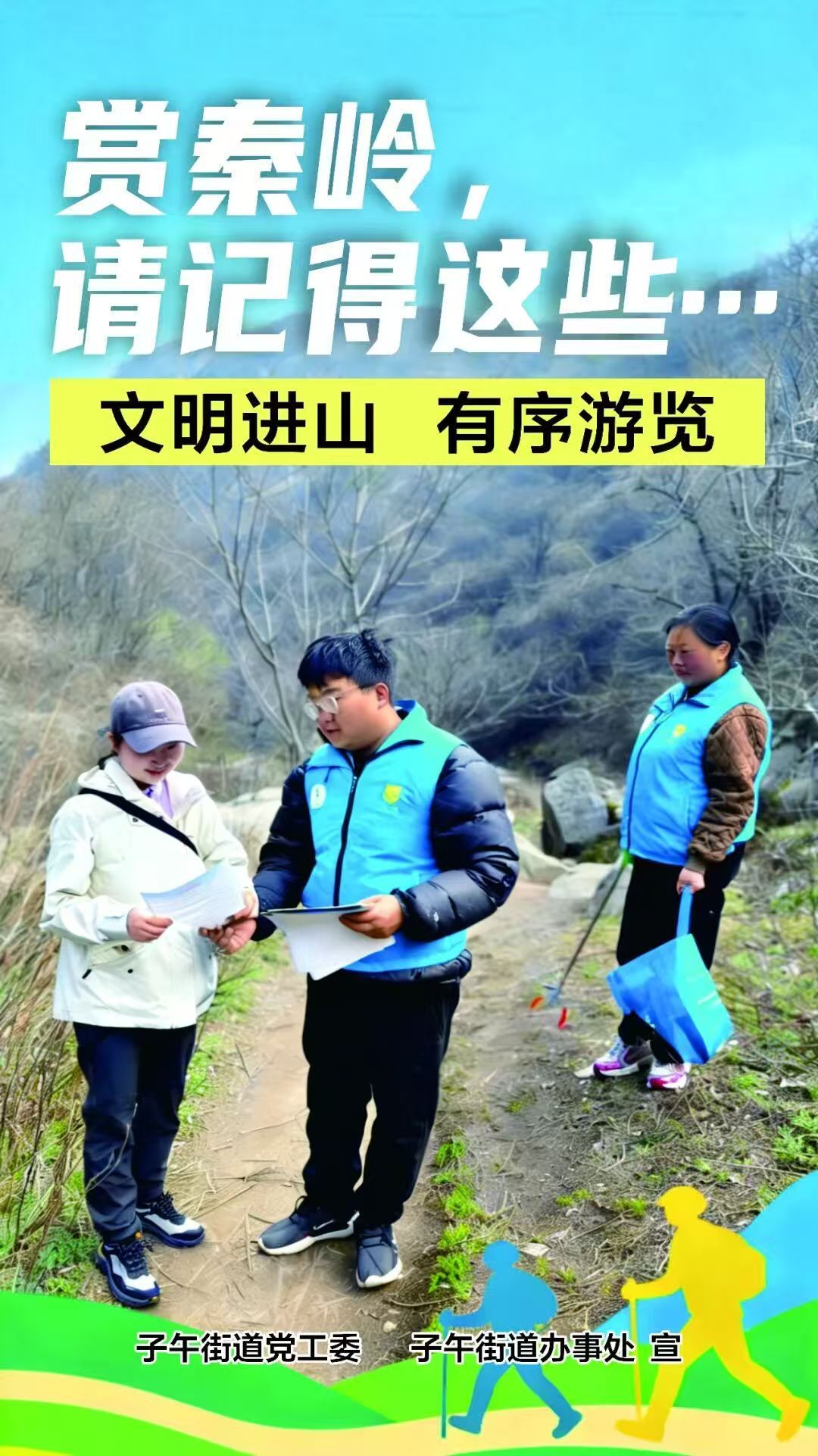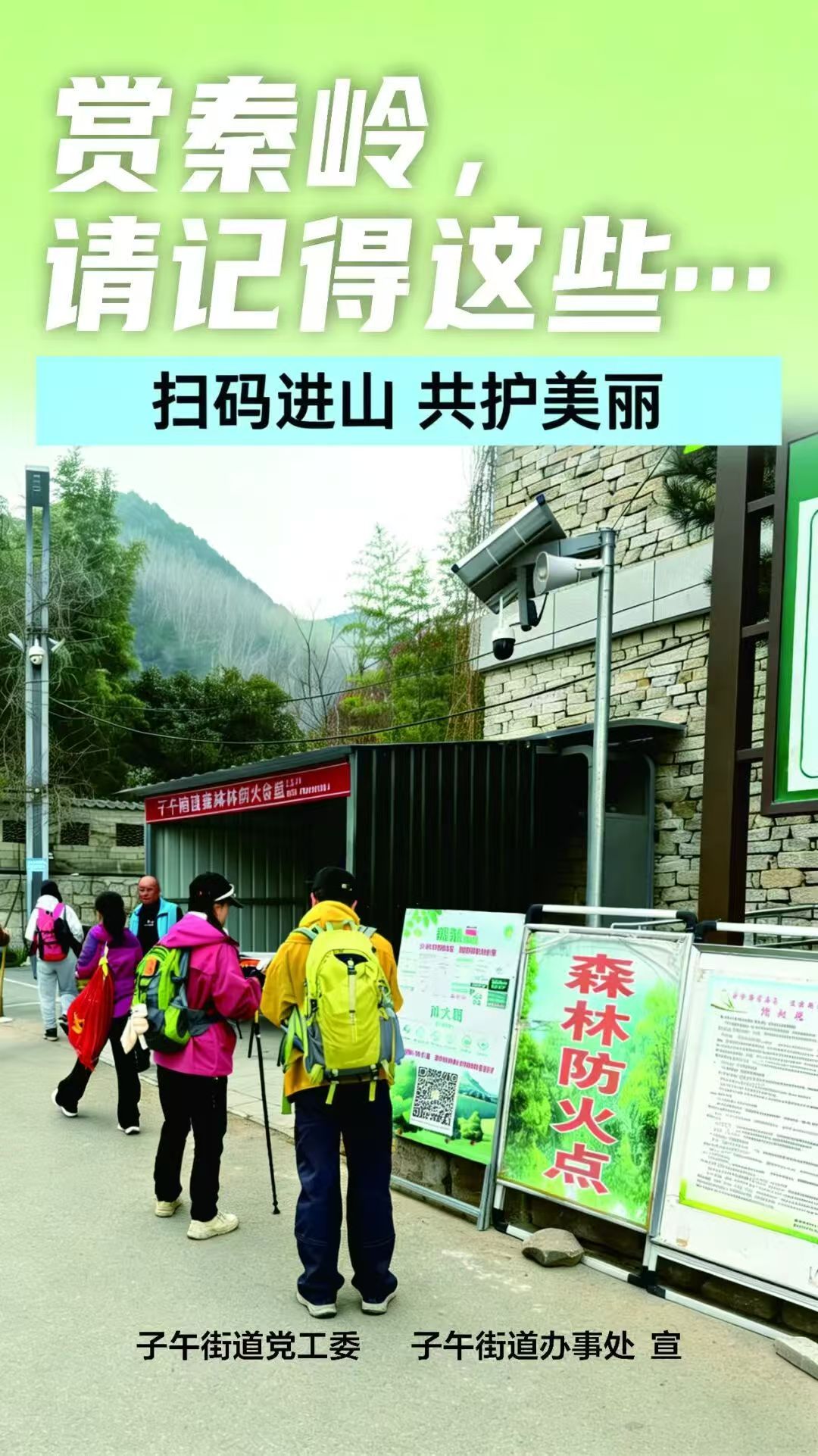 秦岭和合南北、泽被天下,是中华民族的祖脉与中央水塔。春日里,人们走进子午峪赏青山美景。值守人员、保洁员、防火员、网格员与当地居民共同发出倡议:文明进山、爱护环境、杜绝火源、守护生态,让秦岭美景永驻、青山常绿。