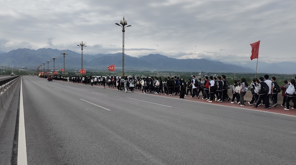 4月16日,西安市长安区第二中学开展千人励志远足研学活动。作为学校的常规活动之一,十一年来,每年春天高一年级师生都要踏上远足之旅,让学生们用脚步丈量家乡的热土,以实践传承文化根脉。这场以“领略家乡美景探索关中民俗风情”为主题的研学之旅,不仅是一次体能的磨砺,更是一堂生动的乡土文化教育课,让学子们在行走的思政课堂中感受家乡之美,体悟人生,汲取文化养分。