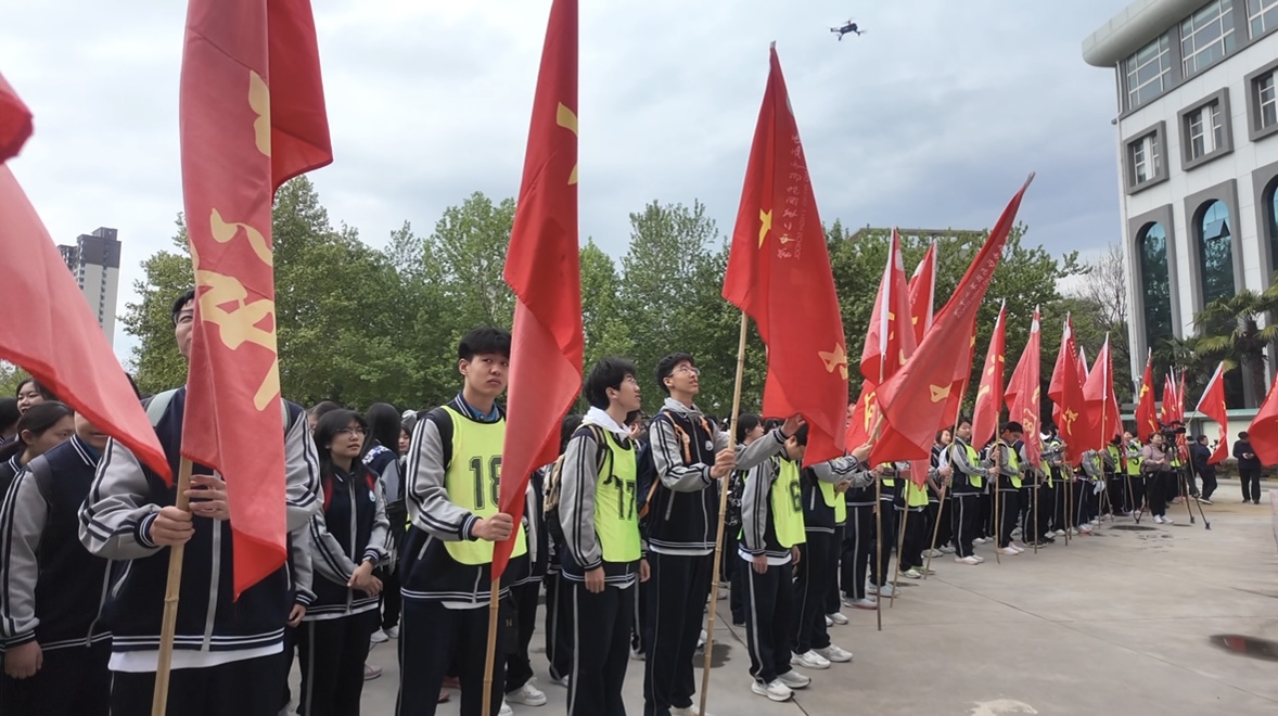 简短庄重的出征仪式后,同学们从老师手中接过队旗,怀揣着激动的心情踏上了20公里的征程。