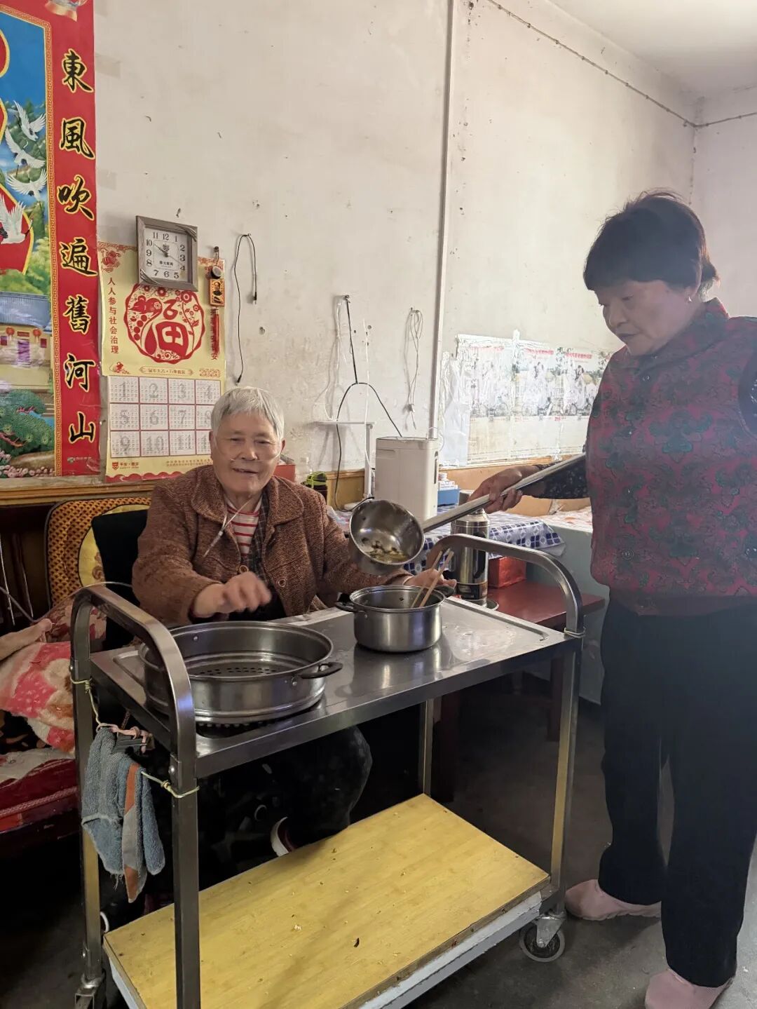 针对行动不便的高龄、独居老人,杜角镇村还组建了微星跑腿“我来帮”志愿服务队伍,提供贴心的送餐服务,志愿者们将热腾腾的饭菜准时送到老人家中,在送上可口餐食的同时,也带去了陪伴与关怀,让特殊老年群体足不出户就能享受到暖心服务。
