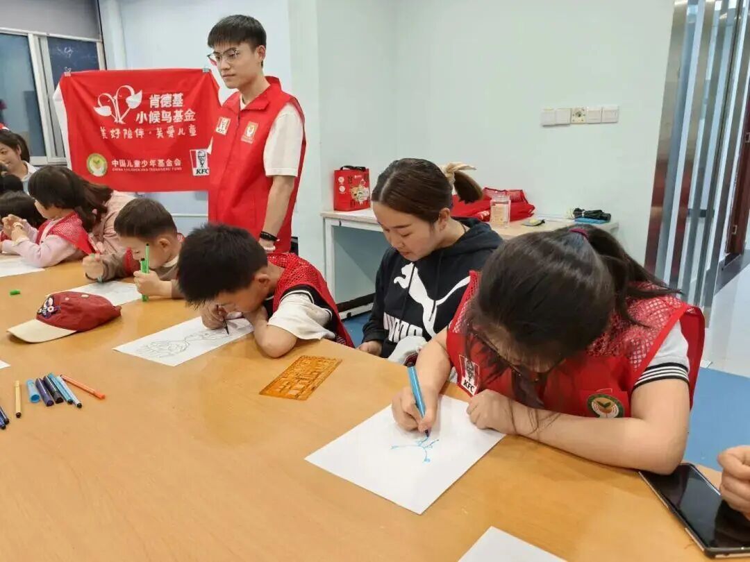 随后开展的“守护者之旅”互动游戏里,孩子们两两分组,一人蒙眼、一人搀扶陪伴,在信任与协作中前行,真切体会到陪伴与守护的力量。绘画环节中,孩子们用画笔描绘心中的守护者,稚嫩的画作里满是对父母的依赖与爱意,童真又暖心。
