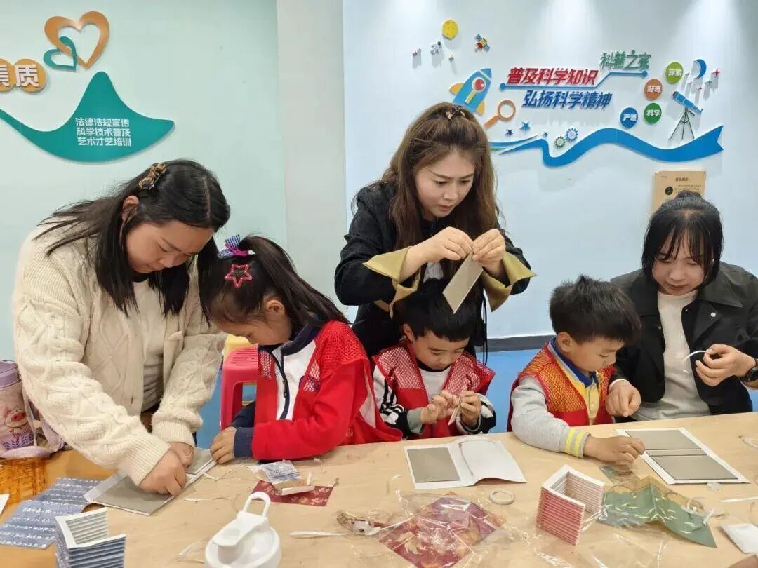 书香润心,手工传情。在国风扇形书灯制作环节,孩子们在志愿者指导下,认真拼接灯架、粘贴画纸、安装灯带,互相帮助、齐心协力完成作品。一盏盏点亮的书灯,既承载着传统文化韵味,也在孩子们心中种下了热爱阅读、传承文化的种子。