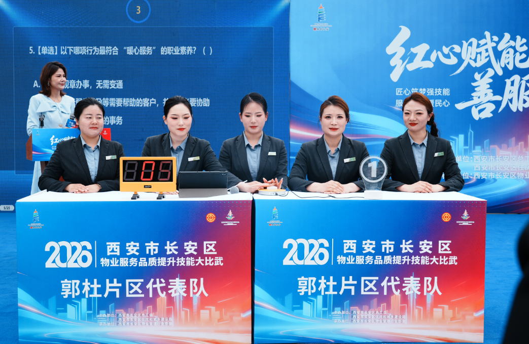 4月的长安,春风和煦,万物竞发。27日下午,随着长安公园内最后一场客服条线总决赛的抢答器蜂鸣声响起,由长安区总工会、区住建局联合主办,区物业管理行业协会承办的“2026年西安市长安区首届物业服务品质提升技能大比武”正式画上了圆满的句号。区人大常委会副主任、区总工会主席黄鸿武出席。